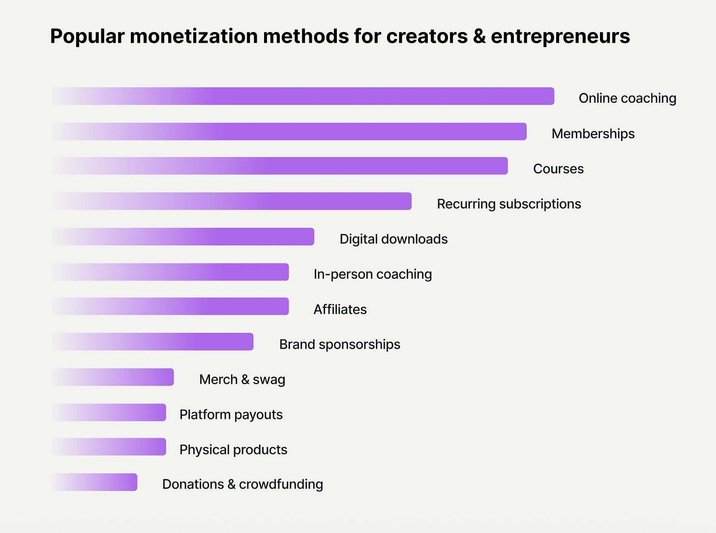 “54% of respondents are already tapping into paid memberships and 41% are using recurring subscriptions, alongside offerings like coaching and courses.”